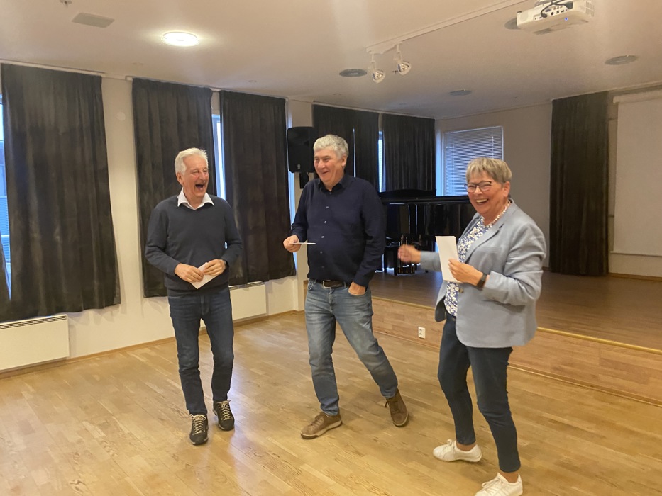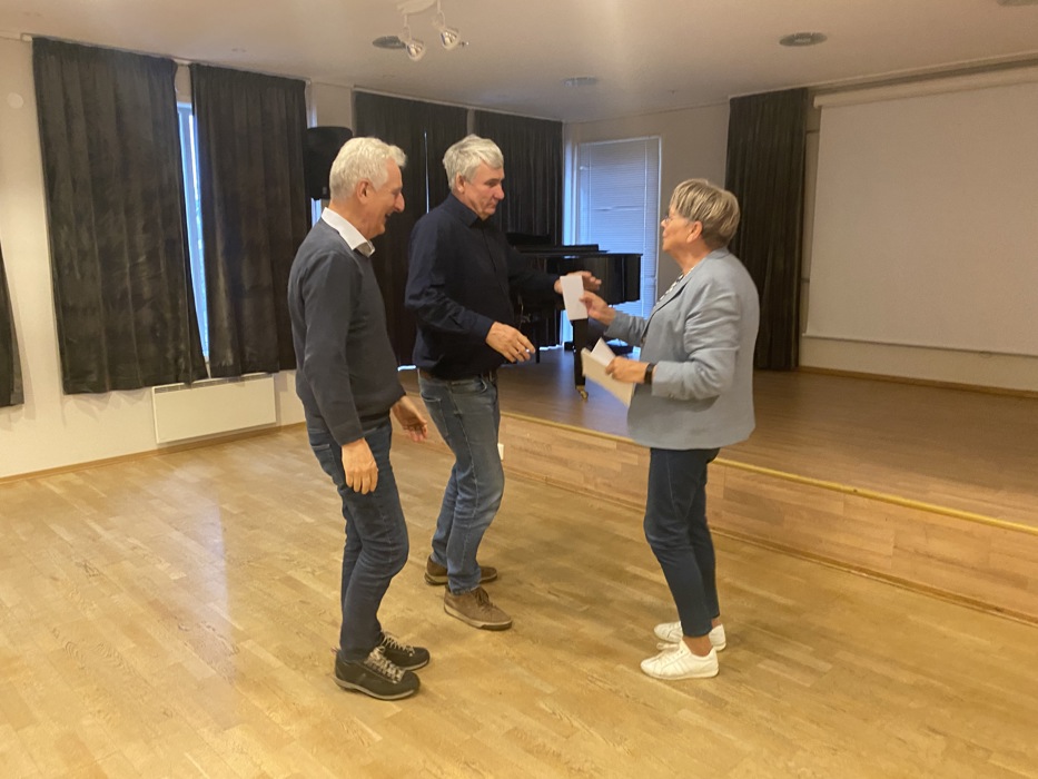 Mai overrakte Paul og Thomas gavekort og klem i forbindelse med deres 70 årsdag.