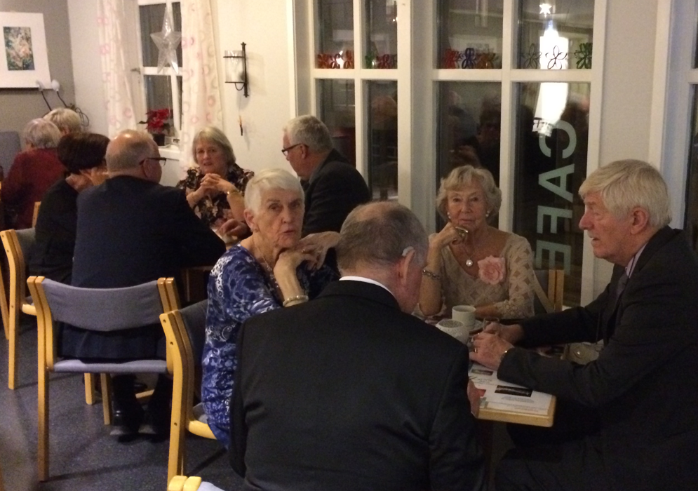 Gerd ønsket deltakerne velkommen og leste en julehilsen (dikt). Allsang med «Det lyser i stille grender» bidro til at forsamlingen fort kom i julestemning.